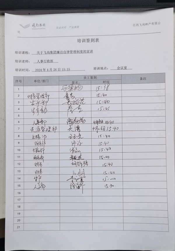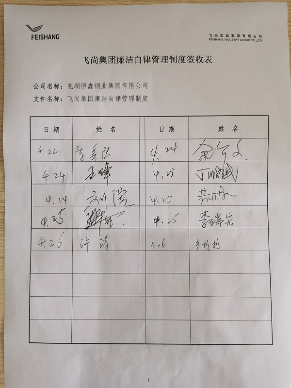 各级带领干部既是清廉文明扶植的到场者,更是清廉文明扶植的构造者、提倡者、树模者。为充实阐扬带领干部的树模带头感化和导向感化,正视并撑持清廉文明扶植,各成员企业起首增强对带领干部的宣扬教导力度,经由过程《签收表》确认团体和本企业两份《清廉自律办理轨制》发放到每位行政任务职员、班组及以上办理职员,并催增进修贯彻。