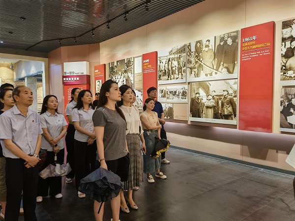 为庆贺中国共产党建立103周年,重温党的辉煌汗青,增强下层党构造的凝集力和战役力,在七月一日党的生日记念日,江西飞尚林产无限公司党支部构造公司全部党员及局部职工前去南昌市小平大道摆设馆观赏进修。