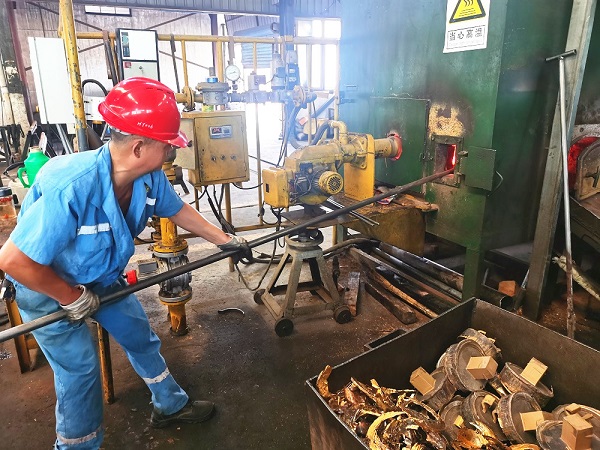 在最大的紫铜延续挤压机前,将满身高低裹得结结实实的车间主任张战争允忙着率领工人装置模具,为下一次开机出产做好筹办。比及机械顺遂地安稳运行,他才松了一口吻,但此时背面早已被汗水渗透。